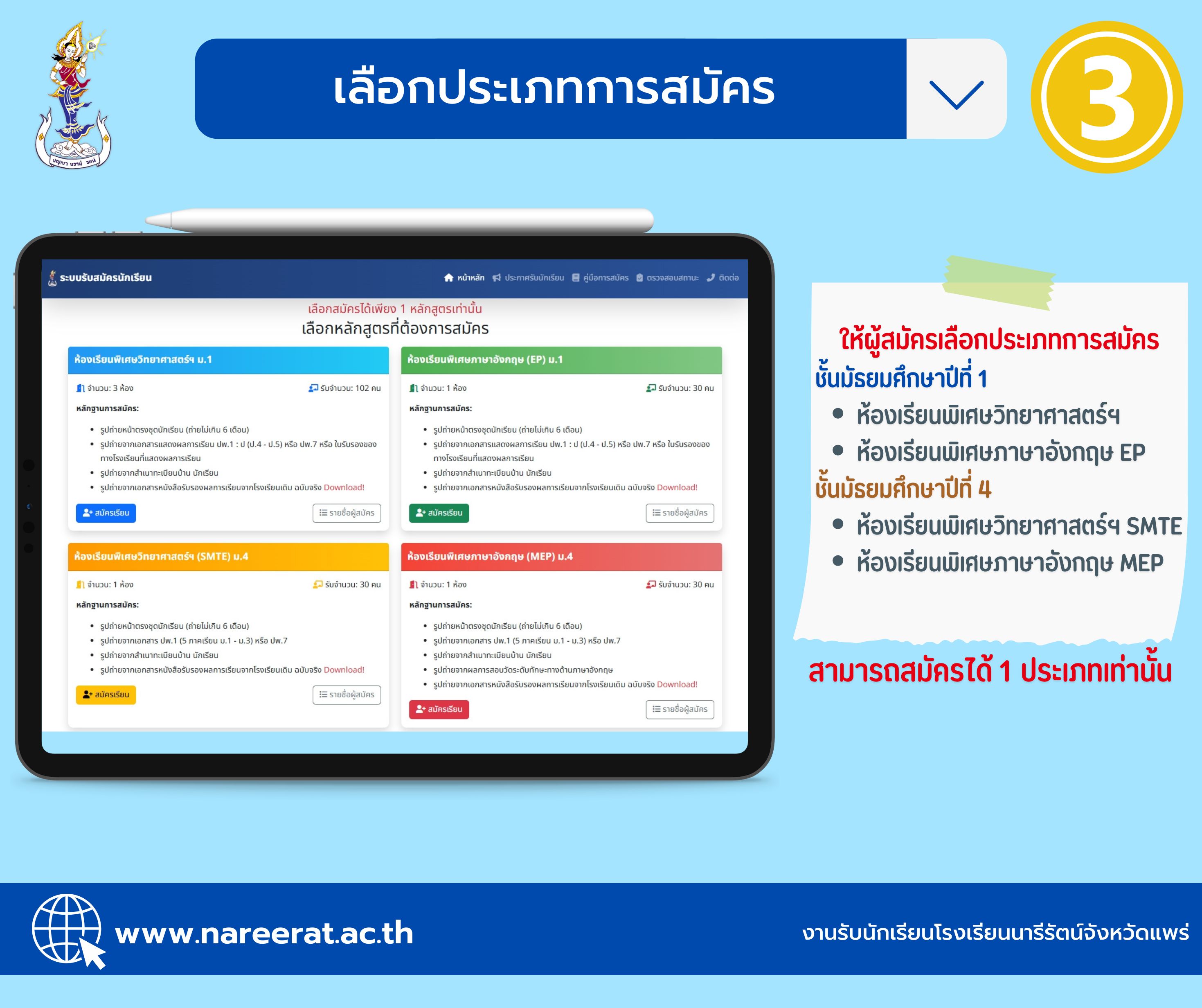 ระบบรับสมัครนักเรียน โรงเรียนนารีรัตน์จังหวัดแพร่